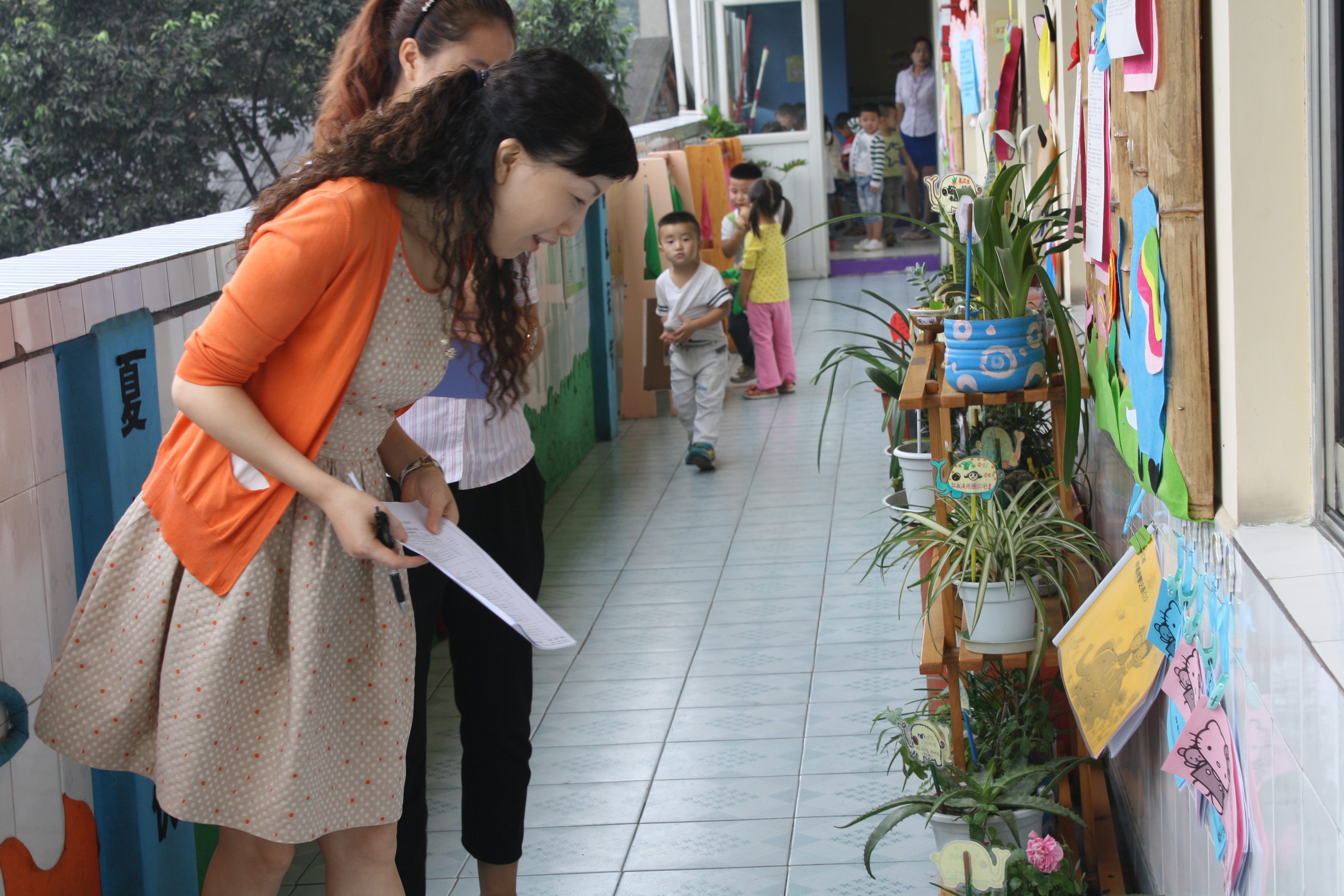 9月15日,在成都市温江区学前教育名师肖蕾专家的带领下,温江区幼儿园等级评审专家小组一行5人来到永宁镇中心幼儿园,进行成都市二级园的复核视导工作。本次视导工作分别从儿童发展、财务管理和卫生保健、教育教学、队伍建设和多元评价、技装安全以及幼儿现场活动等方面展开,整个视导的工作非常的紧凑而有序。视导组首先从以上几个方面翻阅了等级园复核资料,专家们认真查阅资料并提出宝贵意见。